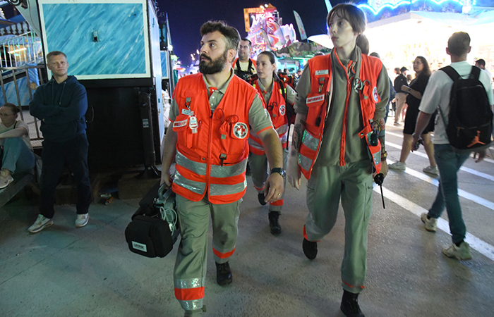 Quelques centaines de mètres plus loin, au Poste de secours de l’Esplanade, l’équipe d’intervention est appelée sur la foire aux manèges. Les petites blessures (chutes, égratignures, coups…) sont monnaie courante. Mais, cette fois, le cas est sérieux. Sophie et son équipe rapatrient un jeune homme au poste de secours pour réaliser les premiers soins et décident de l’évacuer le plus rapidement possible. L’urgence est vitale. Le garçon est sorti d'un manège à sensations complètement groggy. Il s'est apparemment cogné fortement la tête et l’on suspecte un traumatisme crânien car ses constantes sont très mauvaises et il a du mal à rester éveillé. « C’est ça la braderie, on passe souvent des heures à soigner des petits bobos, à rassurer des personnes qui ne se sentent pas bien, à renseigner mille fois la localisation des WC, et puis subitement, tout s’emballe ! Il faut se tenir prêt à toute éventualité, à tout moment », résume-t-elle.