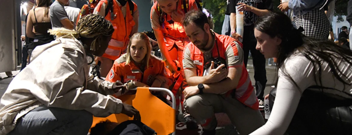 Prédiction qui va se confirmer. La fête dure jusqu’au petit matin. Les cinq postes de secours ne sont jamais vraiment à l’arrêt. Trop plein d’alcool, chutes, malaises… Pierre-François, le médecin de l’équipe, réalise un certain nombre de sutures en quelques heures. Nathan*, un jeune participant de 20 ans, se souviendra de son pas de danse endiablée qui s’est terminé sur un cul de bouteille cassé ! Sept points de suture. Mais en dépit de cette grosse frayeur, il s’est promis de revenir l’année prochaine faire la fête, et il ne manquera pas de saluer nos équipes. « Viva la Croix-Rouge », scandent ses amis venus le soutenir !