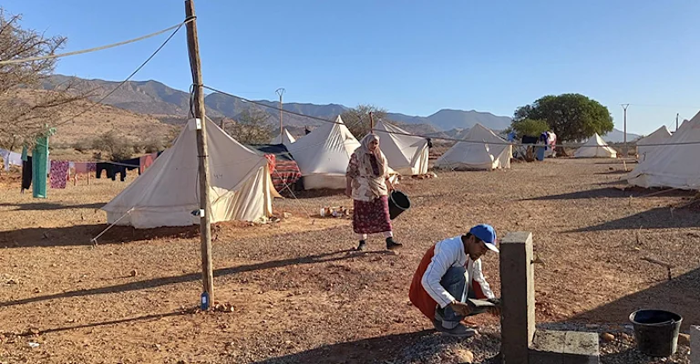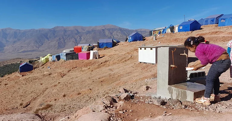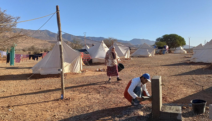 Une cinquième équipe d’ERU est actuellement à pied d’œuvre dans l’Atlas. Au total, 25 équipiers ont été déployés sur trois zones impactées par le séisme : Chichaoua, Taroudant et Al Haouz. Des sites constitués de petits villages accrochés aux montagnes, que l’on appelle douars. Beaucoup ont été réduits en poussière par les secousses. Les maisons de brique sont aujourd’hui supplantées par des tentes provisoires. C’est sur une quinzaine de ces douars, soumis aujourd’hui au froid de l’hiver, que nos volontaires interviennent depuis des semaines. Il a fallu réhabiliter les réseaux d’eau, voir créer des points d’eau, traiter parfois l’eau contaminée des puits. Bref, redonner aux communautés un accès sûr à l’eau. Nos équipes travaillent en collaboration et en complémentarité avec la Croix-Rouge suédoise chargée pour sa part d’installer des douches et des latrines et d’assurer des actions de sensibilisation à l’hygiène.