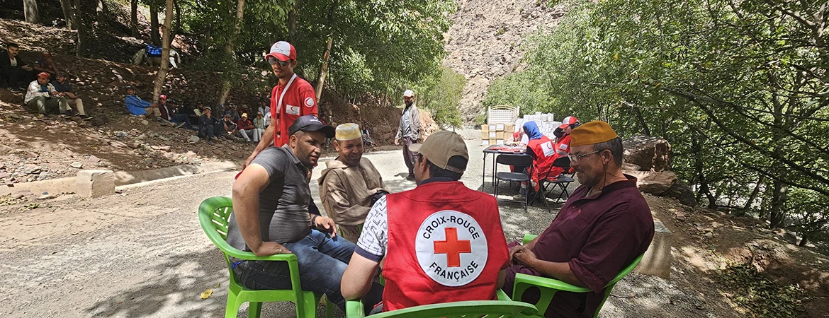 Très vite, nous nous sommes engagés dans un accompagnement durable. Dans le cadre de la réponse de la Fédération internationale des Sociétés de la Croix-Rouge et du Croissant-Rouge, et afin de répondre aux besoins identifiés par nos collègues du Croissant-Rouge marocain, nous avons ouvert une délégation en février 2024 avec une équipe dédiée qui apporte son soutien pour renforcer, entre autres, les activités de premiers secours, de santé mentale et de soutien psychosocial, indispensables à la population après une telle tragédie.