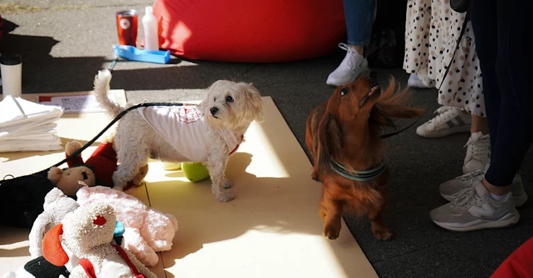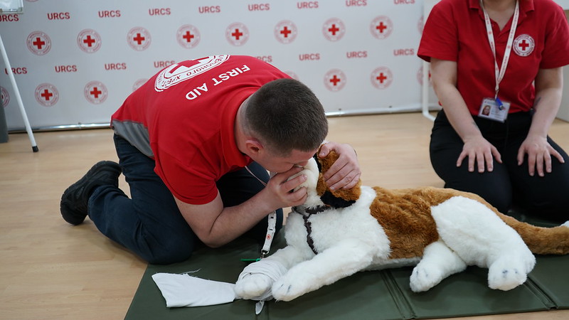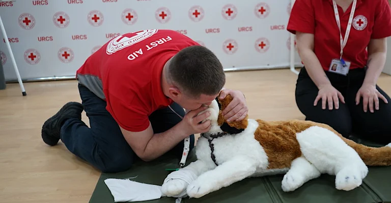 Aussi, nous avons constaté que lorsqu’il faut fuir la guerre, les gens emportent deux choses avec eux : leurs papiers et leurs animaux. Nous avons donc développé des activités de premiers secours pour animaux de compagnie et accueilli deux chiens formateurs au sein de notre équipe. Lorsque l’on est en capacité d’aider nos animaux, on se sent utile.