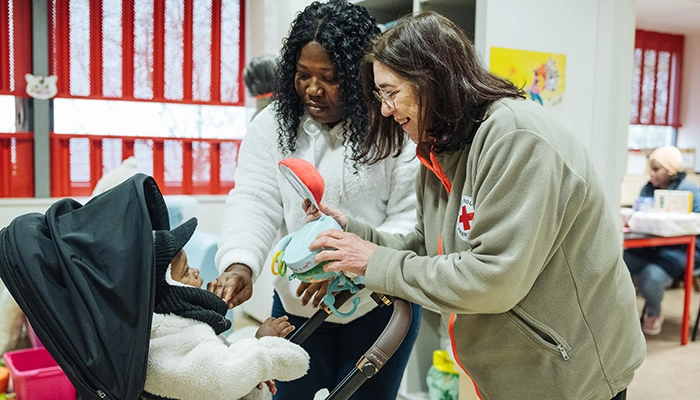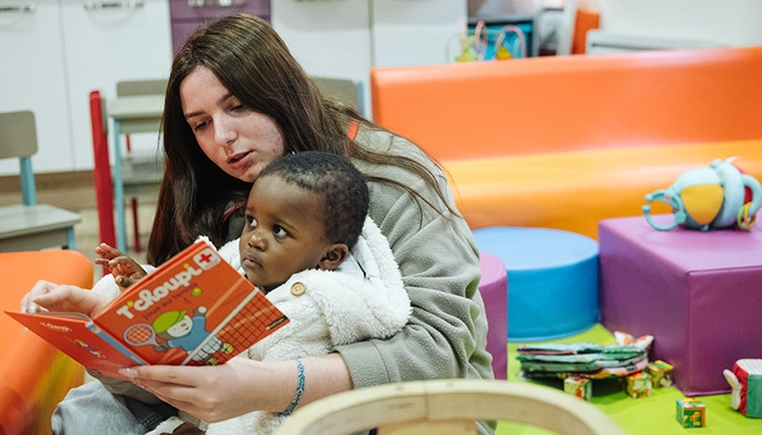 L’Espace bébé-parents apporte bien plus qu’un coup de pouce matériel. La salle d’accueil a des airs de grand salon, avec sa cuisine ouverte, ses tables en bois et son aire de jeux colorée. Cet espace chaleureux permet aux familles souvent exilées, parfois logées à l’hôtel, de se sentir un peu chez elles. Une parenthèse aussi propice à la confidence. “On écoute, on fait le point, on essaie de répondre à leurs besoins. Discuter permet de libérer la parole, de poser des mots sur leurs difficultés. C’est très important. Quand la vie est trop dure, la sociabilité s’en trouve affectée, les relations de couple aussi, le lien avec les enfants parfois. A nous de repérer les signes de mal-être et de voir comment aider, à notre niveau”, explique Christine. Cette ancienne infirmière puéricultrice a rejoint l'équipe quelques mois seulement après son départ en retraite. Très investie, elle sait, par expérience, que les familles qu'elle accompagne ont besoin d'être valorisées pour se reconstruire. Et si les sujets abordés sont trop lourds, trop intimes, les enfants sont pris en charge par les bénévoles et les parents entendus dans un bureau attenant, en toute confidentialité.