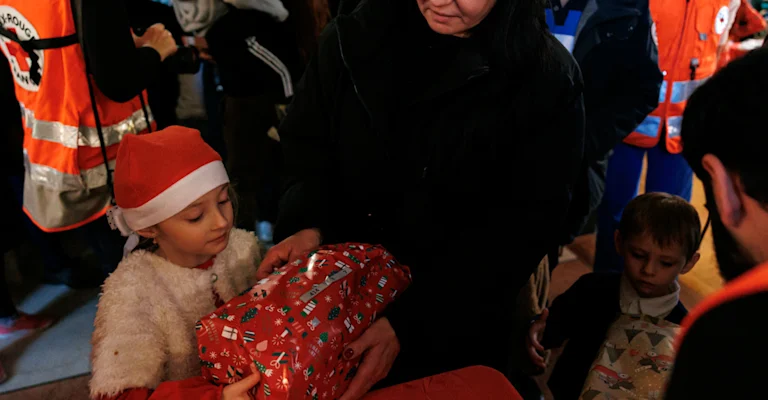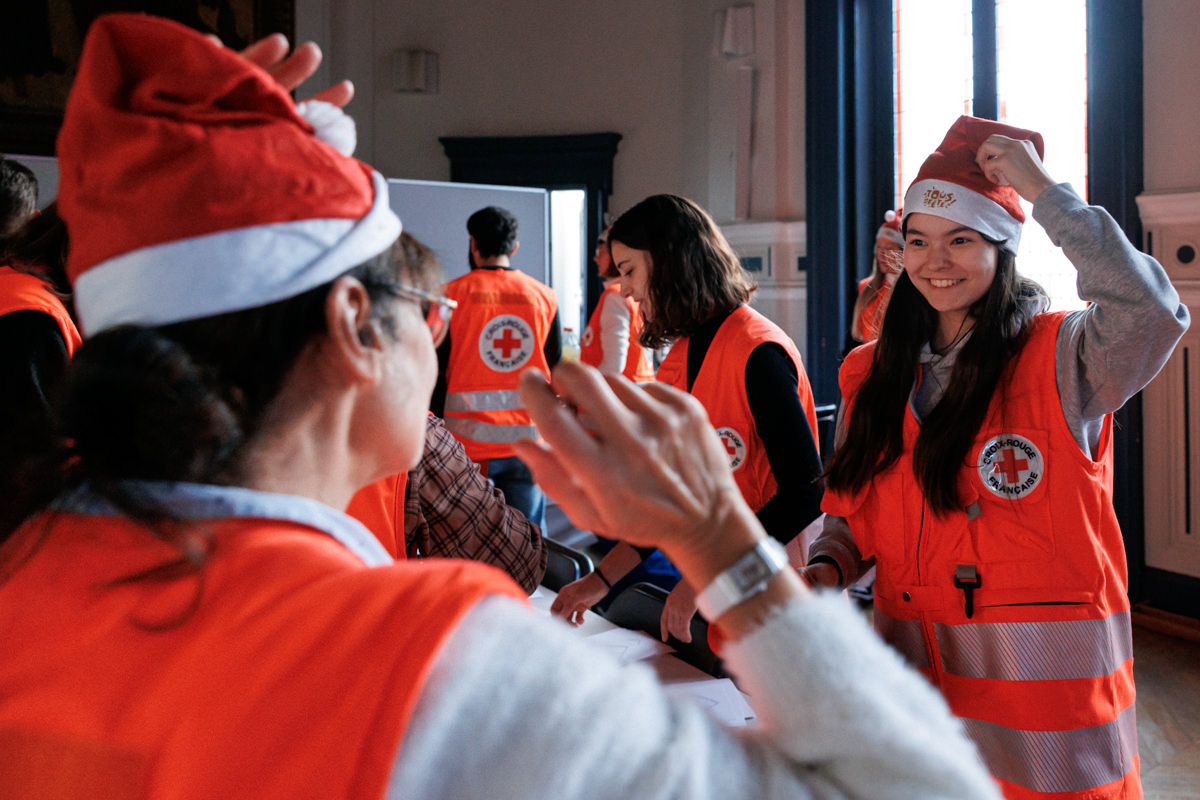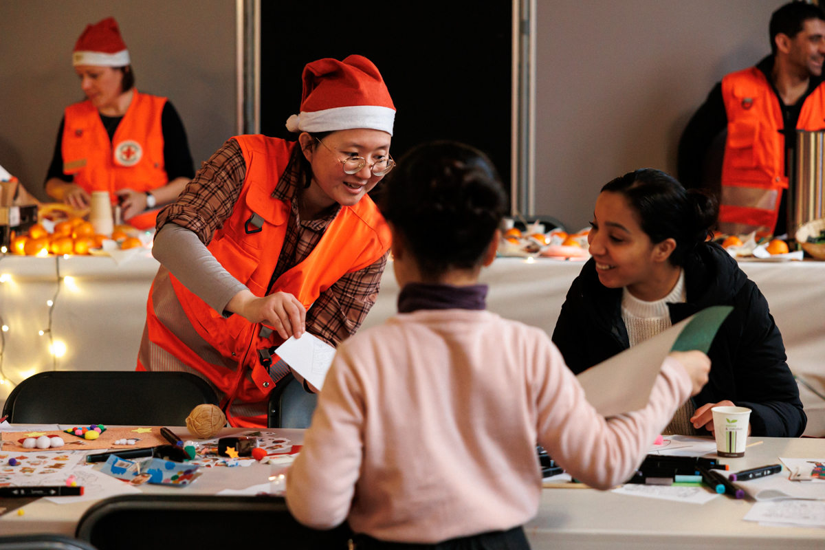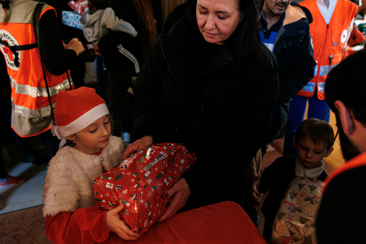 L'après-midi festive est coordonnée par les unités locales du 1er, 2ème, 3ème, 4ème et 10ème arrondissement de la capitale pour la troisième année consécutive. Son succès repose sur la collaboration de nos volontaires. Chacun met la main à la pâte : « Des bénévoles ont trouvé les cadeaux, d'autres ont géré le goûter, d'autres encore la musique... Chacun peut exprimer sa créativité et retrouver son âme d'enfant », souligne Édouard. C'est le cas pour Marie, future coach sportive, aux commandes de l'atelier conte, réveil musculaire et danse. Une dizaine de bénévoles guident les enfants, très attentifs et amusés. Sofia, 7 ans, vêtue d'une jolie robe rouge, entraîne son petit frère Macsim sur la piste devant le regard enjoué de leur maman ukrainienne Olga. Alors que les petits s’éveillent, les parents prennent des photos et des vidéos pour garder des souvenirs. Enthousiasmés par le moment, certains participent comme Djedjiga qui se faufile sur le parquet pour profiter de la séance de relaxation entre ses deux garçons.
