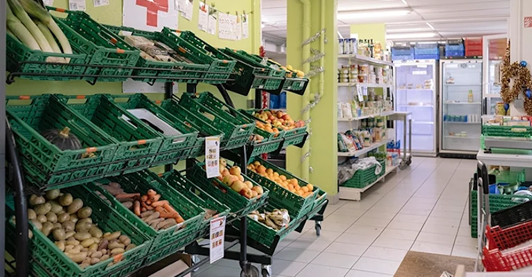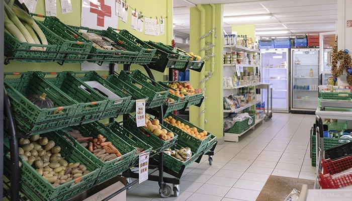 La jeune maman apprécie de partager un moment avec les autres usagers qui attendent leur tour pour faire leurs courses : « À chaque fois, je vois des personnes différentes. On s’assoit cinq minutes et on échange quelques mots, c’est toujours sympa ». Dans ses trois sacs de courses, la jeune femme a acheté des gâteaux, du sucre, un peu de charcuterie, quelques boîtes de conserve, des steaks hachés et des couches pour bébé. Pour ce qui est des fruits et légumes, Sarah, qui possède un CAP cuisine, sait toujours quoi en faire : « Il n’y a pas de perte ! ». L’épicerie permet à toute la famille de maintenir une alimentation équilibrée en payant beaucoup moins cher : « Je fais des courses complémentaires après l’épicerie, je fais de vraies économies parce que je peux les adapter à ce que j’ai eu ici ».